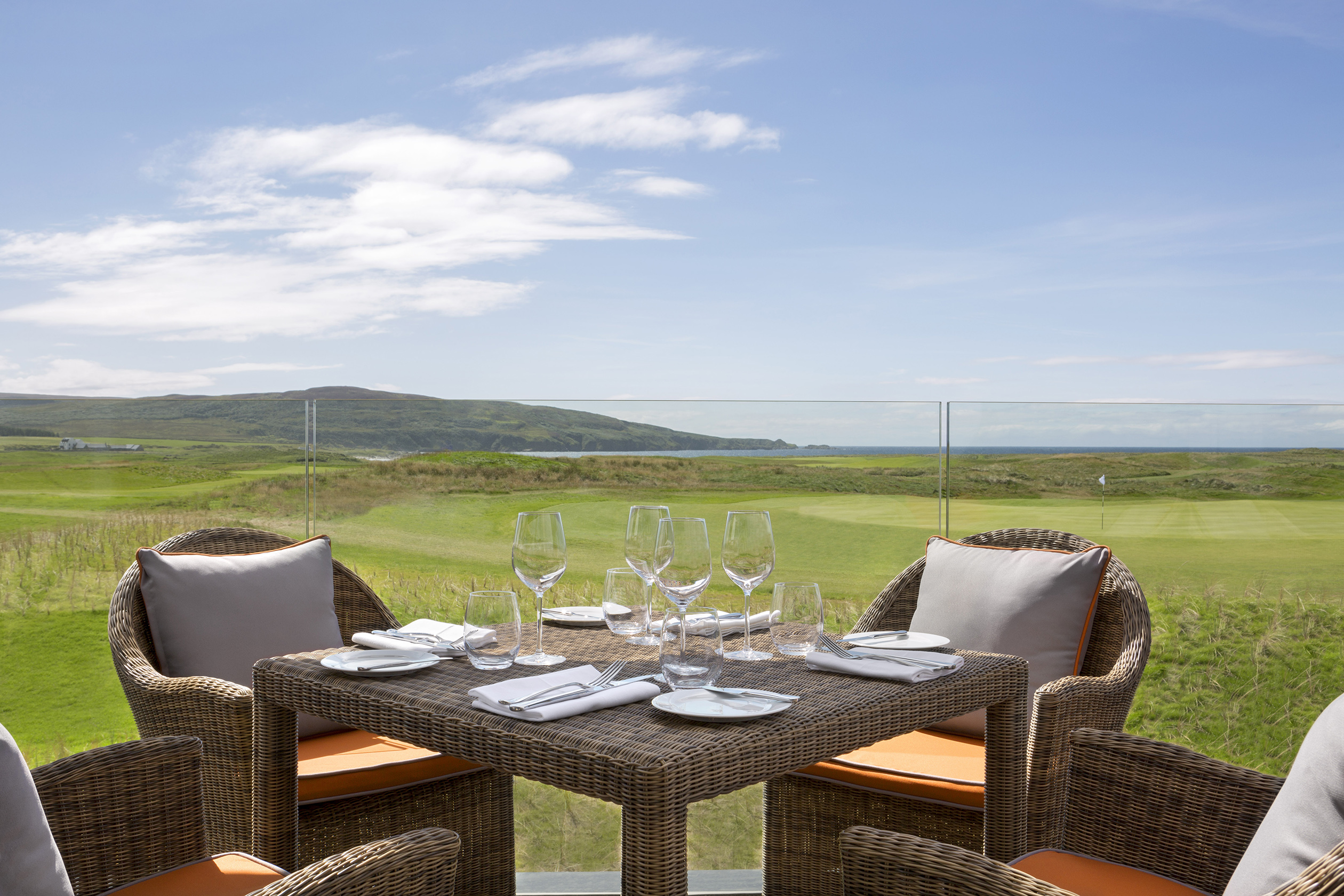 The 47-bedroom hotel with spa is now open having retained a small portion of the original structure as part of the new facility. It sits in a great location overlooking the 18th green. Rooms are modern, spacious, light and airy. The upstairs lounges and restaurant have stunning views over the course to the sea. A 6 hole “wee course”, short game area and putting green make up the resort facilities. Be sure to fit in time to visit one of Islay’s famous whisky distilleries to cap off a truly memorable experience.